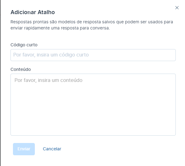 | Contente | Digite a mensagem que deseja enviar quando o codigo curto for inserido no chat. |