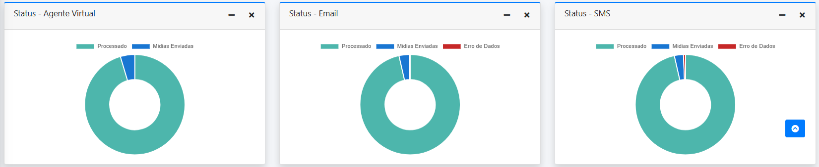Mídias Enviadas,Erro de DadoseProcessado, facilitando a rápida identificação de problemas.