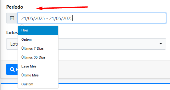Nesta tela, você poderá visualizar e selecionar a sua campanha, além de definir o período desejado.