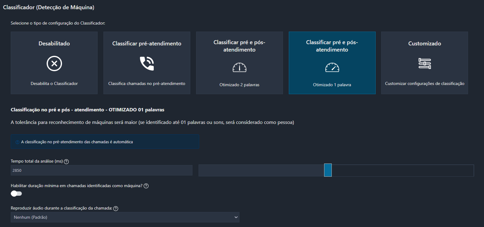 - Define o tempo de análise para classificação (ex: 2858ms)